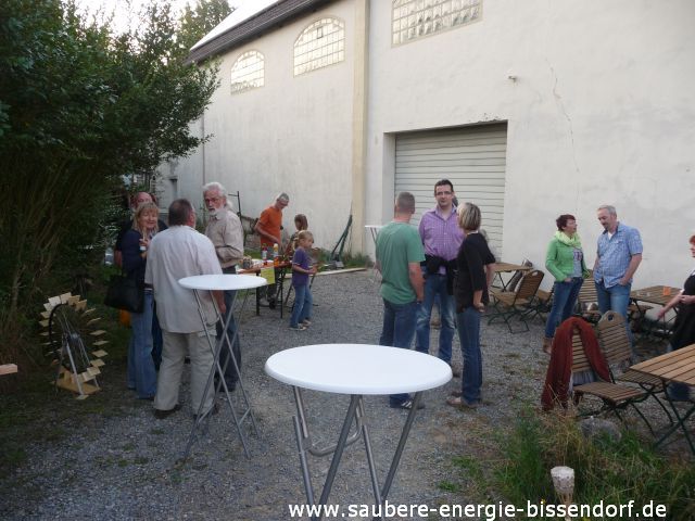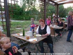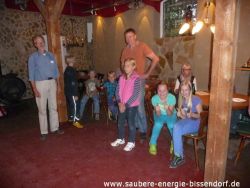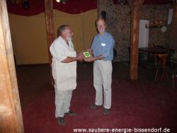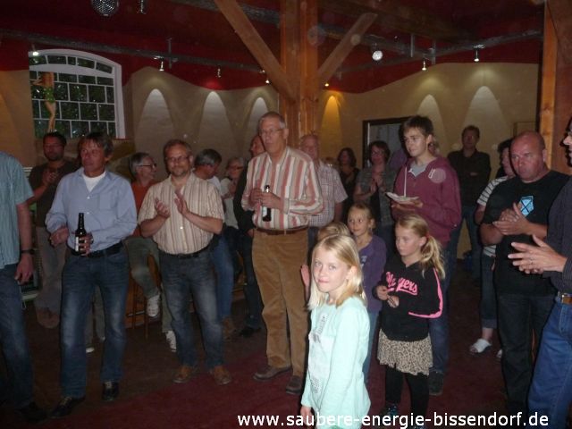 Zu diesem Anlass kamen an die 70 Gäste. Darunter viele Vereinsmitglieder, die Eltern und Kinder unserer Kindergruppe und interessierte Bissendorfer Bürgerinnen und Bürger. Die Kindergruppe startete diesen Tag schon um 17h am Rosenmühlenbach um das Ökosystem Bach zu erforschen und Strom durch Wasserkraft zu erzeugen. Als 100. Mitglied wurde Herr Kuhnke vom Solarenergieverein Osnabrück geehrt. Der 1. Vorsitzende Gerd Hündorf überreichte Herrn Kuhnke gespeicherte Energie in Form eines Stücks Eichenholz. Auf der LandArt 2013 in Schledehausen konnten Besucher ihr Wissen in einem Energiequiz testen. Herr Diemtar Zinke aus Bissendorf beantwortete als einziger Teilnehmer alle Fragen richtig. Als Preis erhielt er 2 LED Leuchtmittel welche von der Firma Hagenuk Lichttechnologie aus Bissendorf gesponsert wurden.